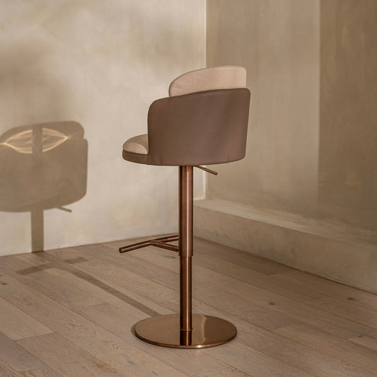 Albar Bar Stool | Adjustable | Boucle, Leather & Bronze