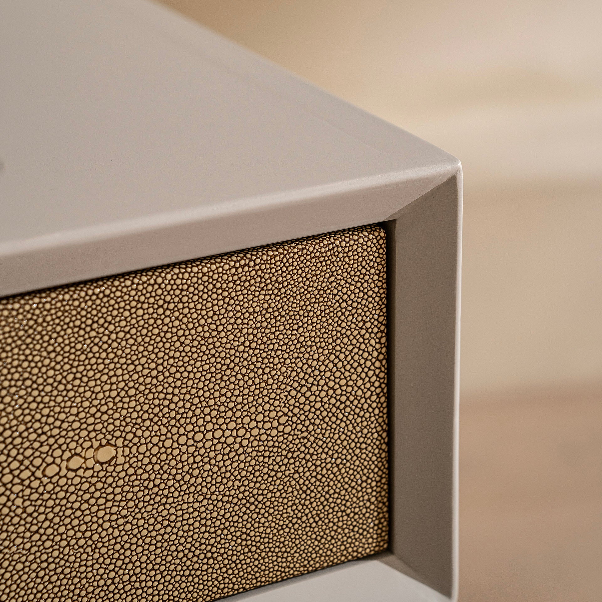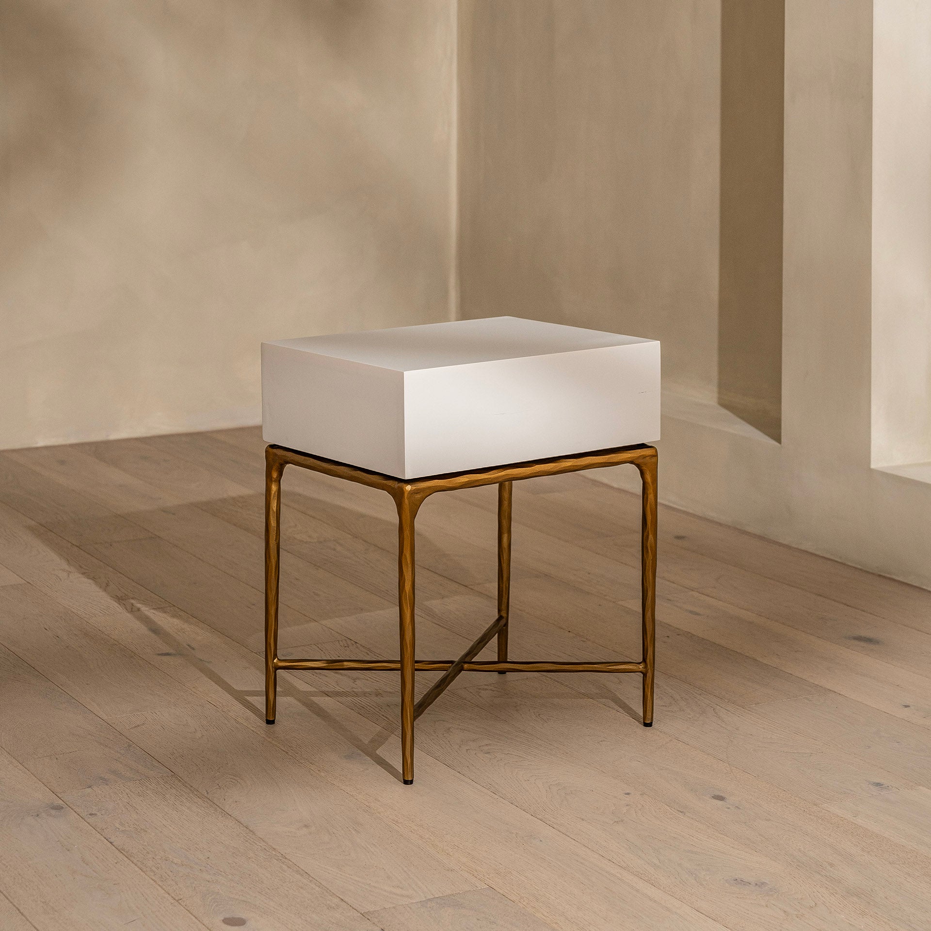 Airlie Bedside Table | 500 Wide White, Shagreen & Brass Forged Metal, 1 Drawer