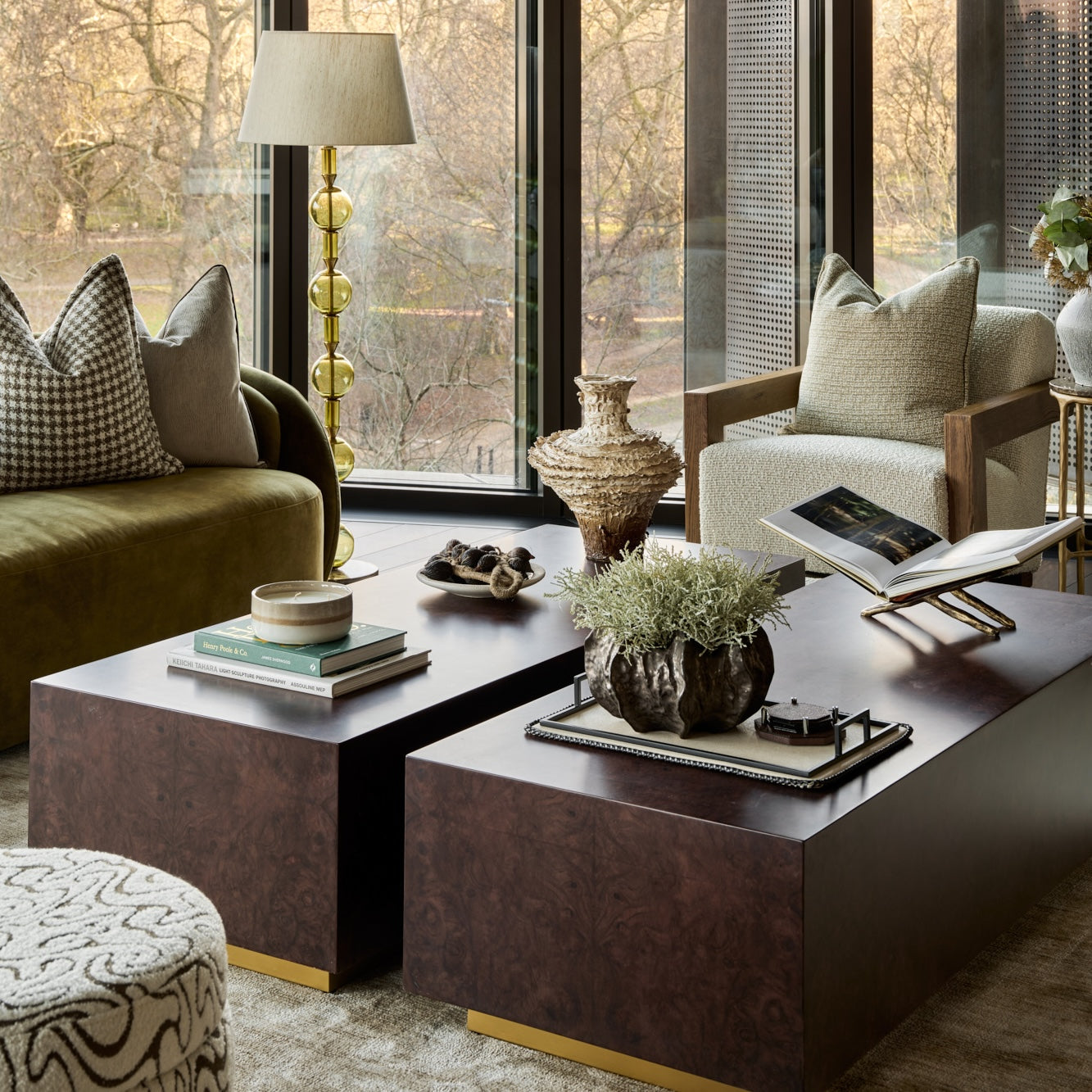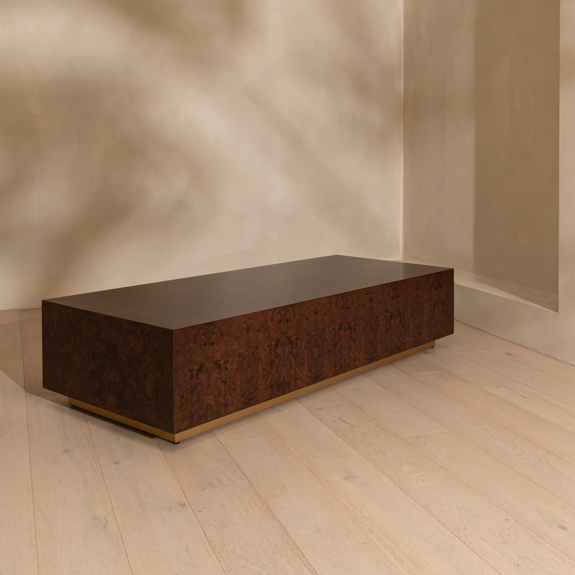 Crafted from stunning dark chocolate burl veneer with a smooth matte finish, the Brooks table combines elegant materials with timeless design to elevate your home.
