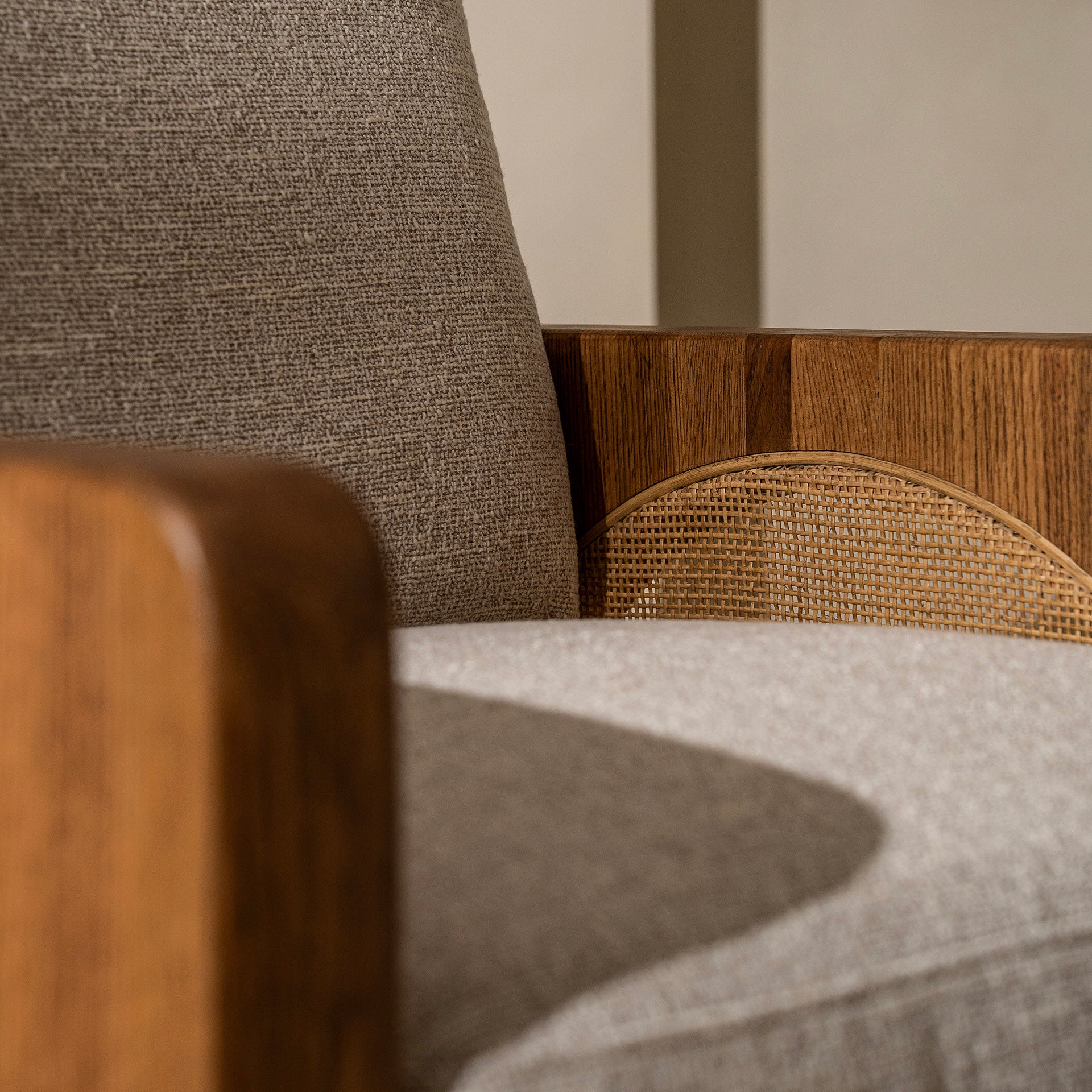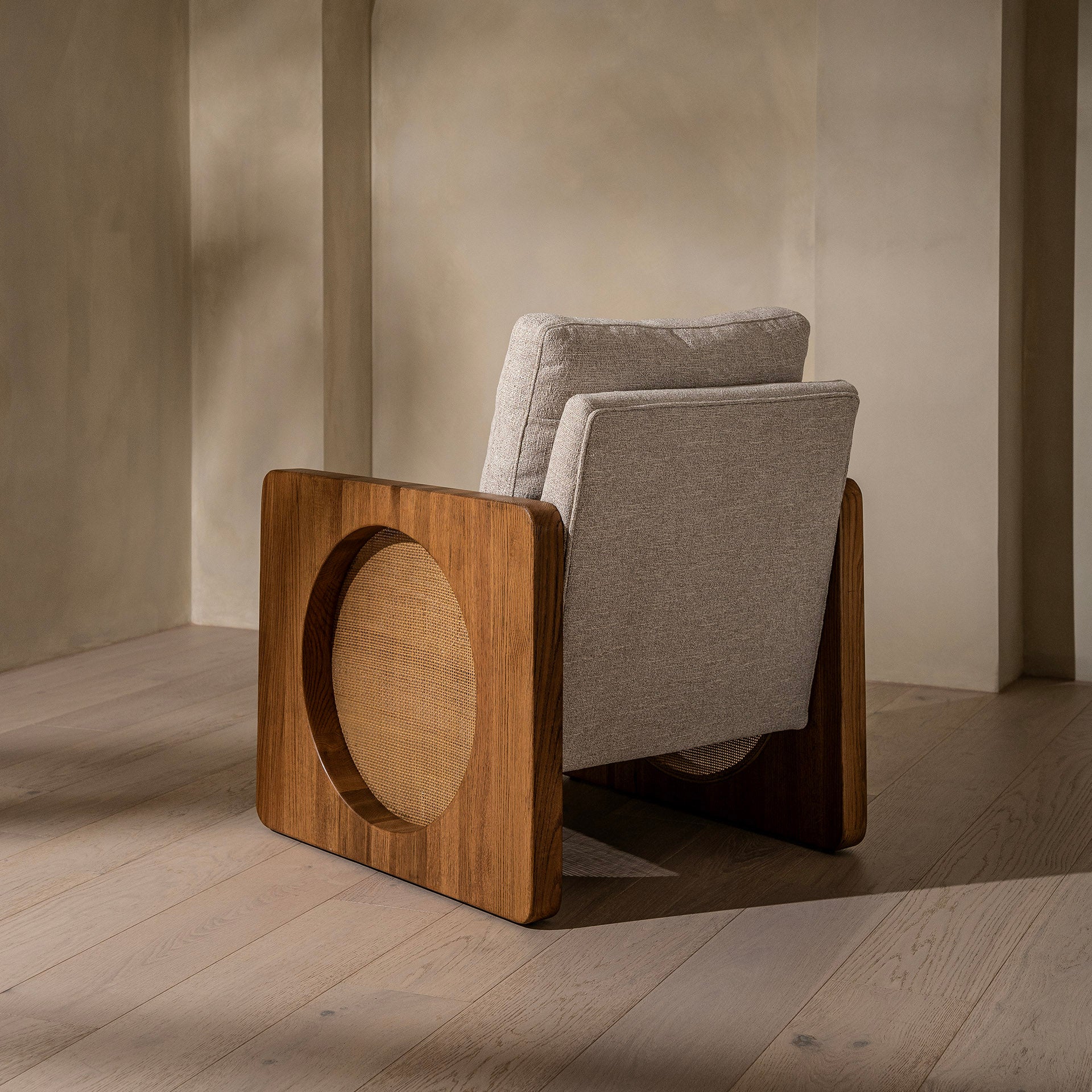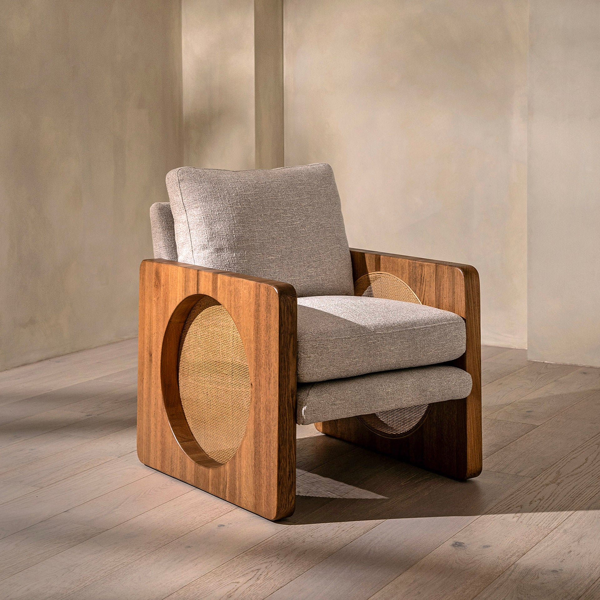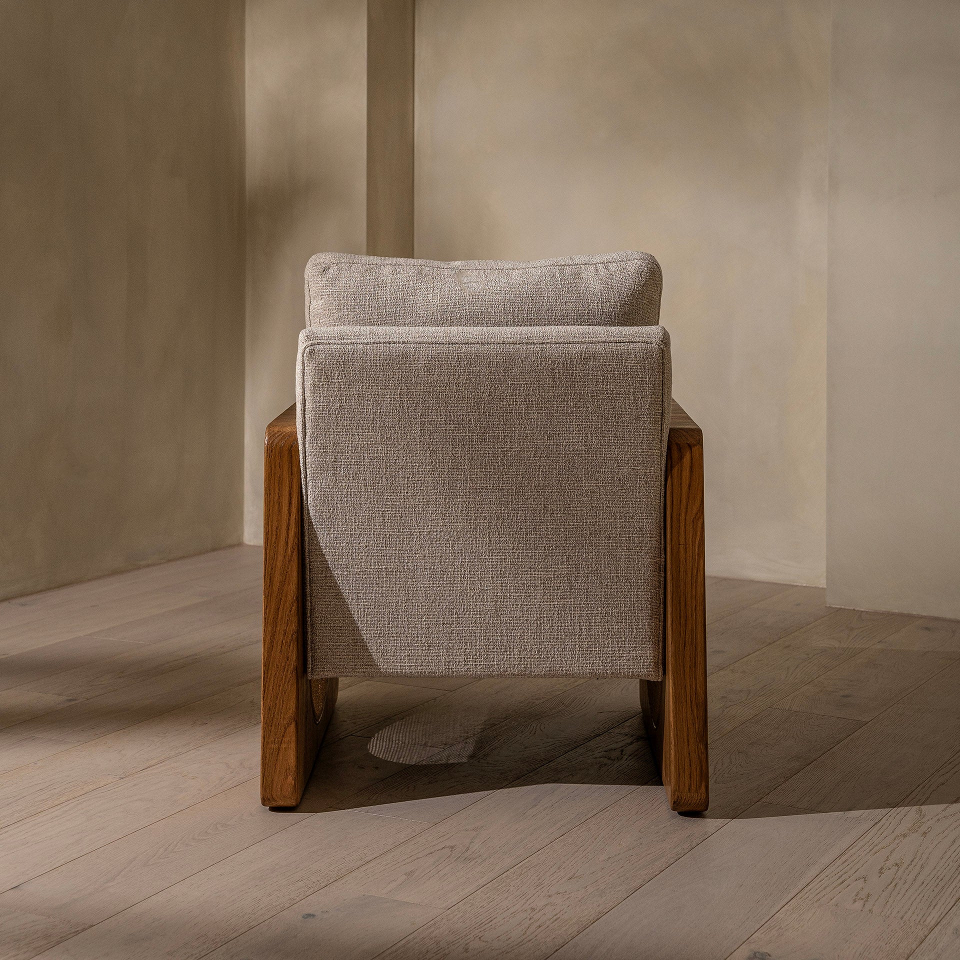 The feature chair is part of the Elmria family and so works well with its dining chair equivalent, the Elmira dining chair.