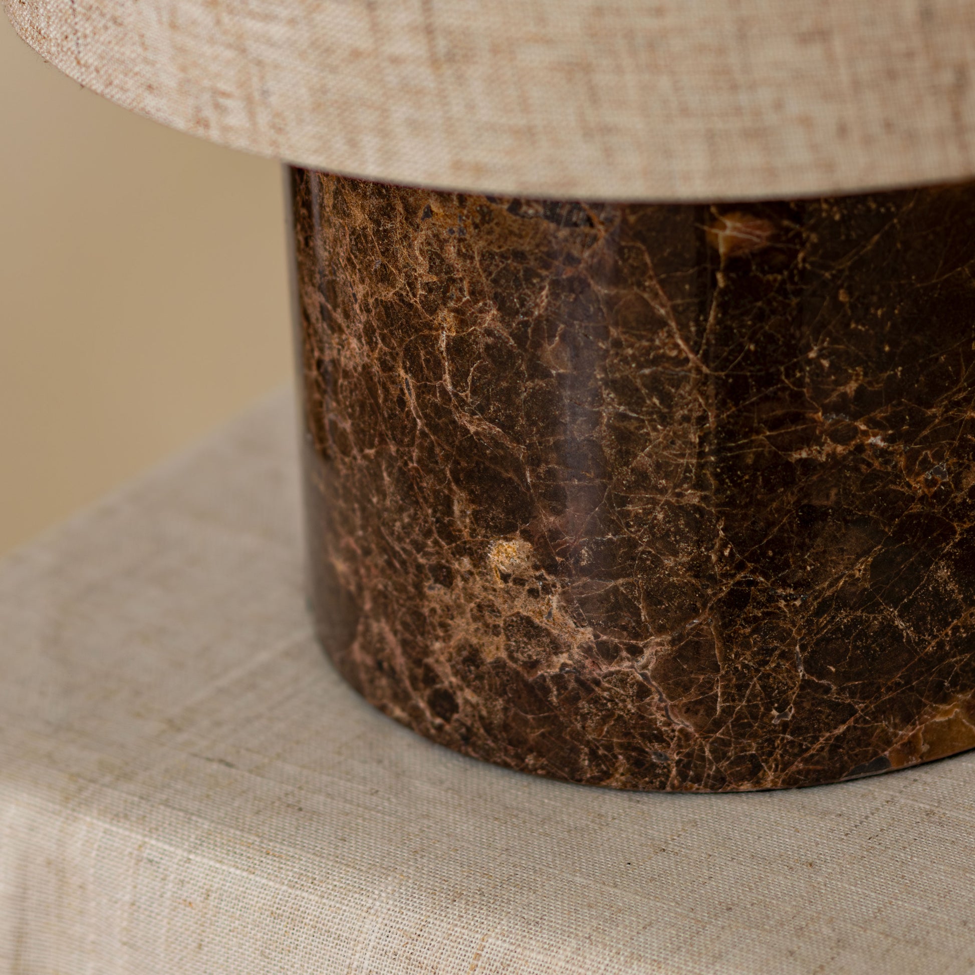 The Little Els Side Lamp is compact yet effortlessly stylish, featuring a solid brown marble base with natural veining and a softly textured linen shade. Its simple, timeless design makes it a versatile piece that brings warmth and sophistication to any room.