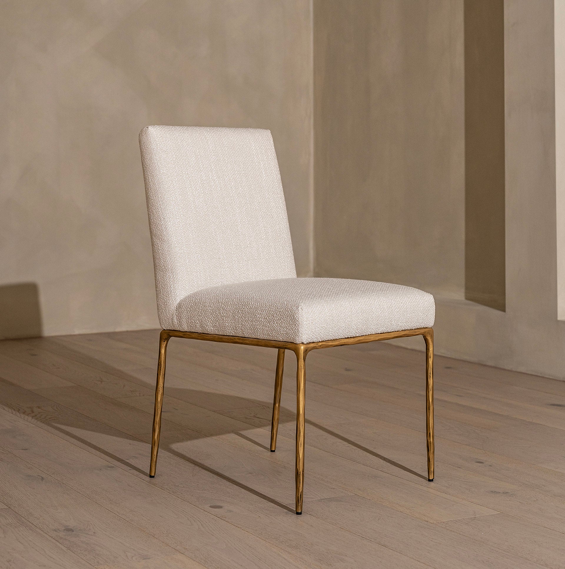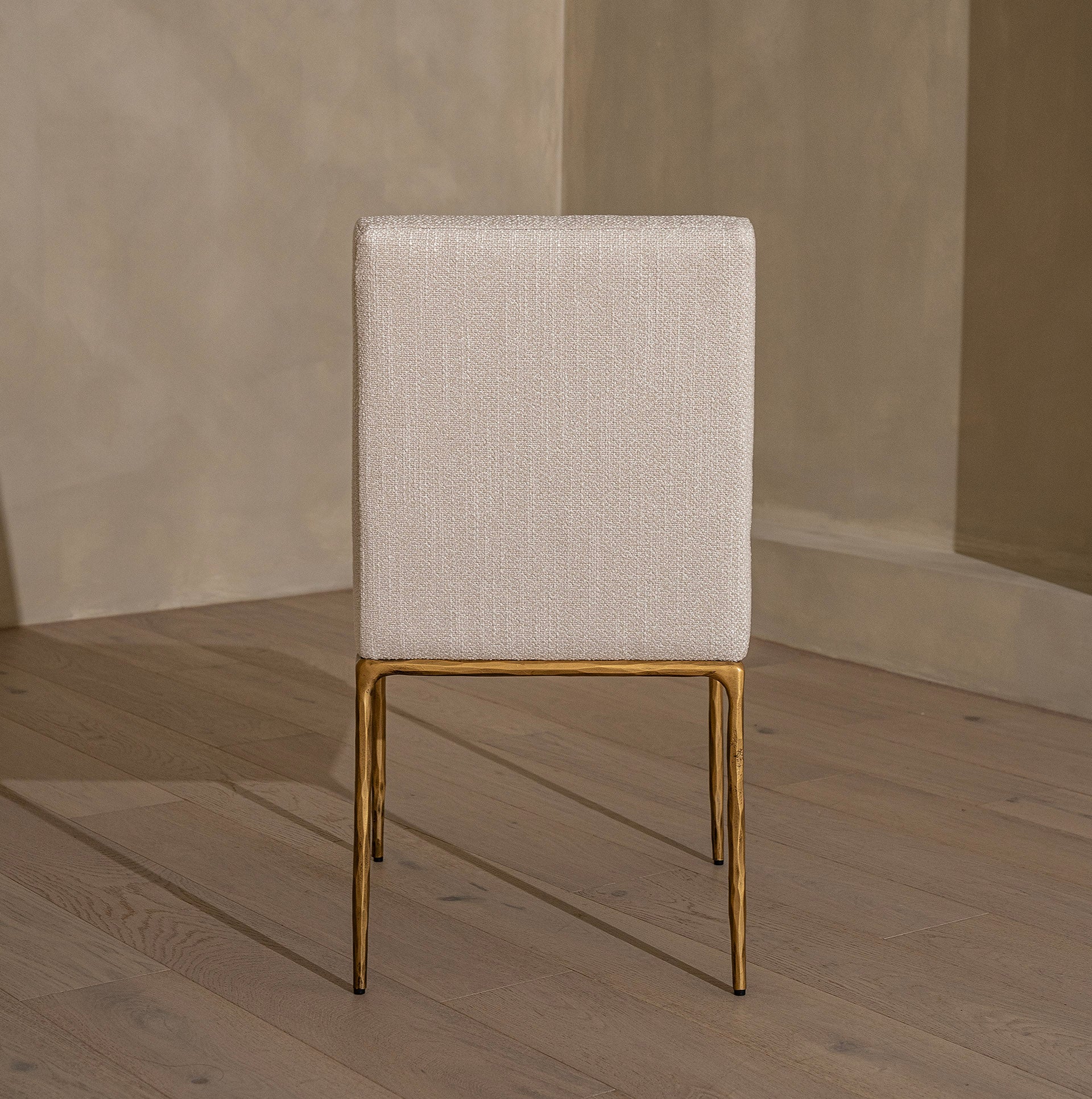 Made entirely by hand, the Marino has a forged brass finished steel frame that has individually been hand beaten to give each chair its unique shape and appeal. Completed with a soft linen fabric seat, it delivers a stylish look to any dining setting.