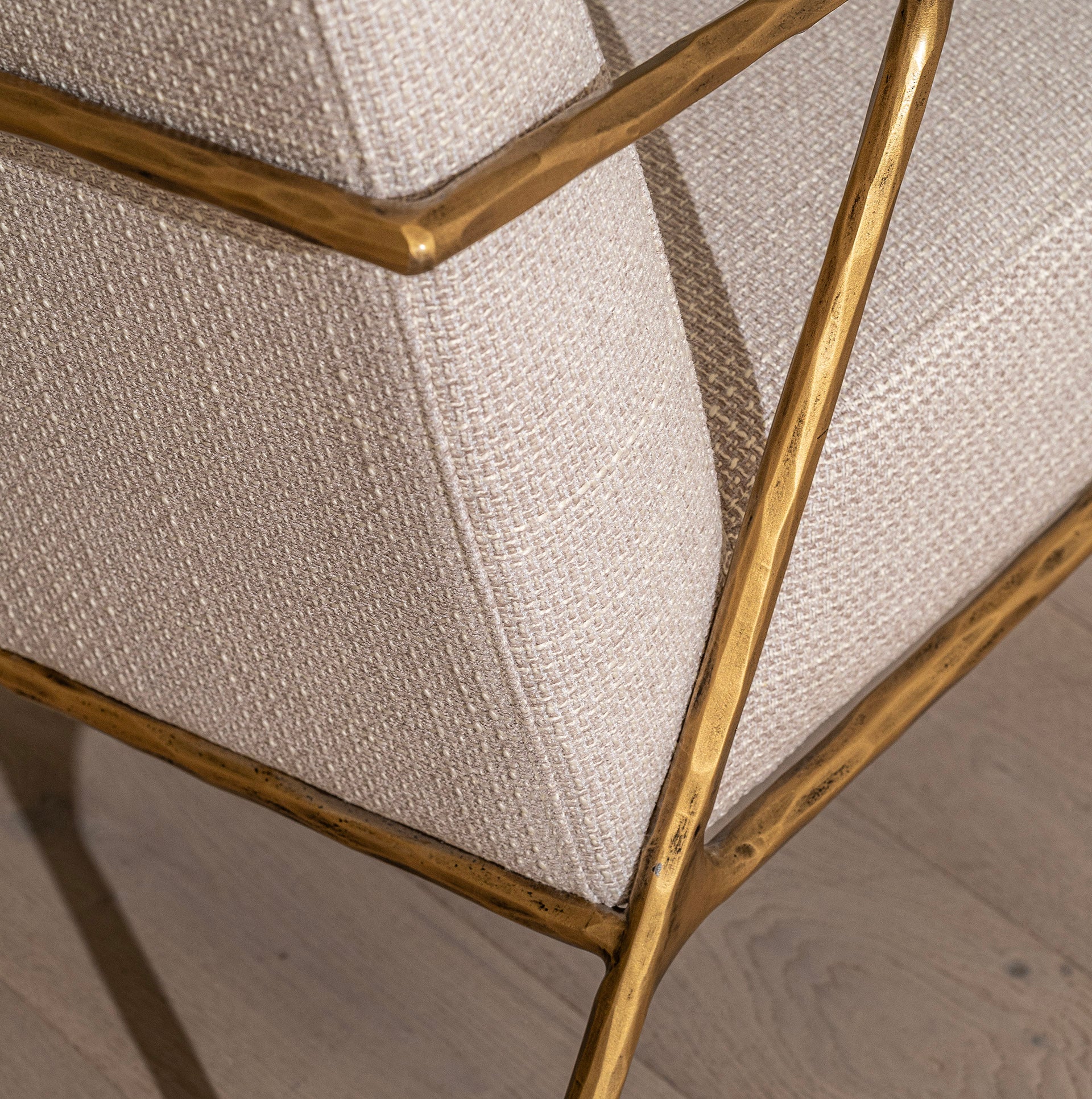 Completely made by hand, the Mariono is made up of a forged brass steel frame that has individually been hand beaten to give each chair its unique shape and appeal. Completed with a soft fabric seat, it delivers a lavishly stylish look to any living room setting. The chair can be paired with other items from the Mariono collection, such as the Mariono dining chair or bar stool.
