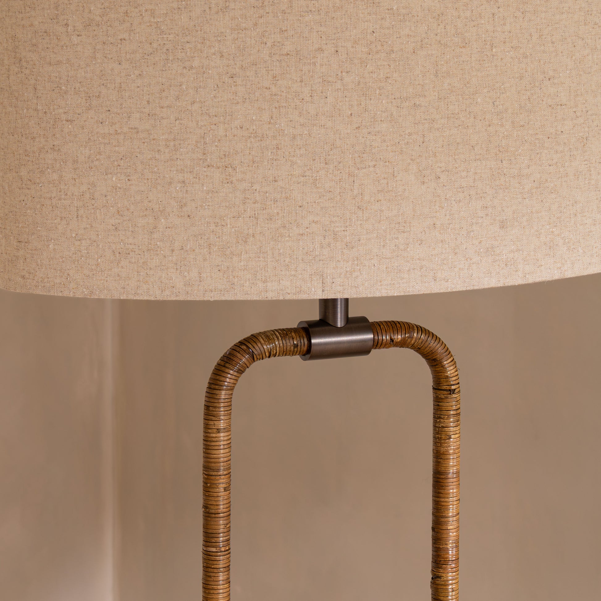 Full of character and texture, the Newbie Floor Lamp combines bronze detailing with a beautifully woven wood-fibre rattan shape. Its natural, organic aesthetic makes it a standout addition to any room. Simple yet stylish, the lamp is completed with a fabric-covered cord featuring built-in controls for effortless convenience.