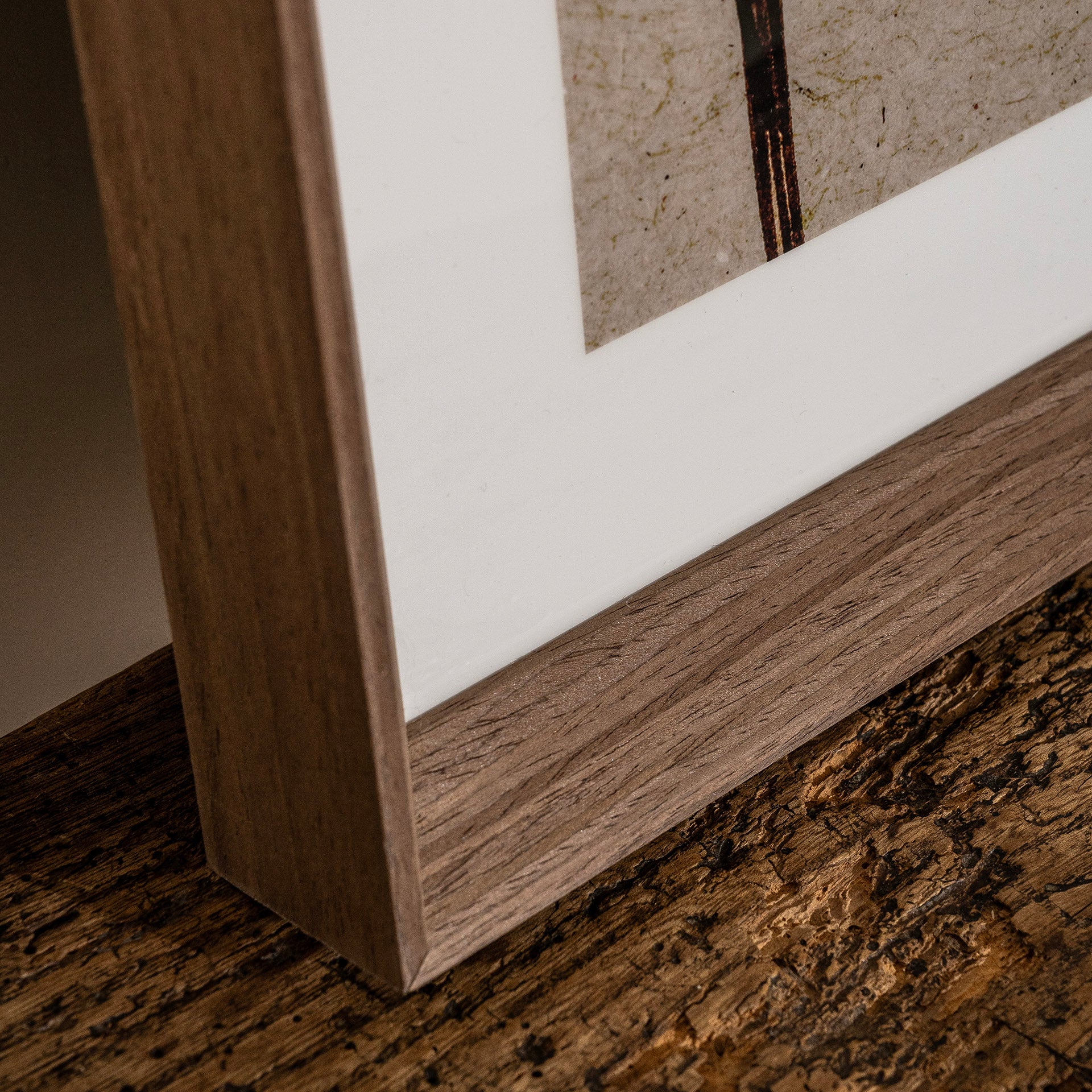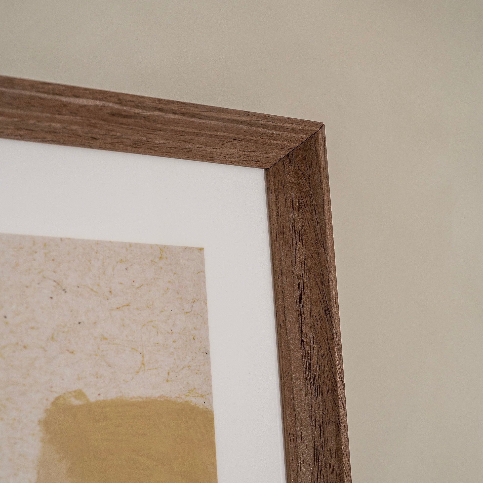 Framed in a light brown stained oak veneer, it adds natural warmth and texture, complementing the gentle tones of the print for an effortlessly refined finish.
